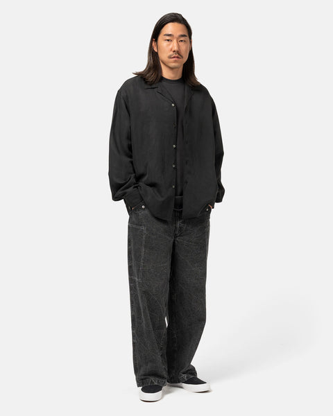 Black Washed Wide Denim Pants