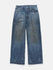 These jeans take a familiar five-pocket style and rework it through ssstein’s distinctive lens. Their wide leg, deep rise and pleated waist offer relaxed comfort and a bold, voluminous silhouette, while the layered washing and distressing techniques create a rich, lived-in texture unique to each pair. Finished with hand-applied wear details and an adjustable drawcord waist, they bring vintage character and easy versatility to everyday wear.