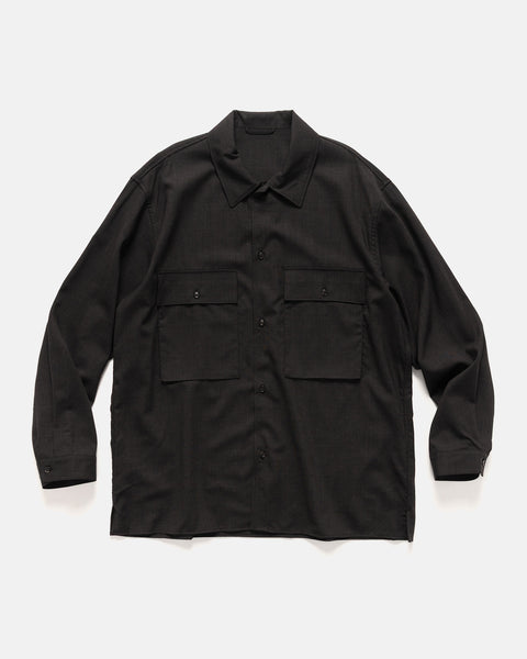Silk/Cotton Plaid Military Shirt Black x Ivory
