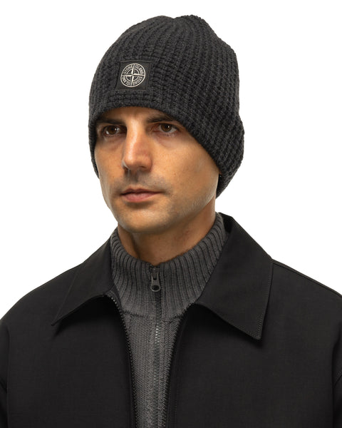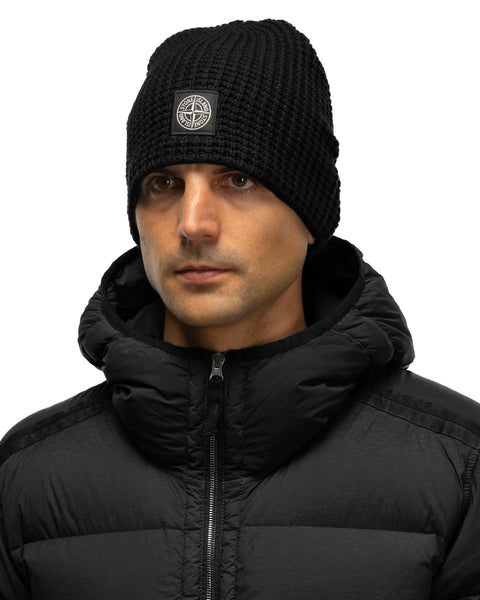 Reflective Knit Compass Patch Beanie Black Melange